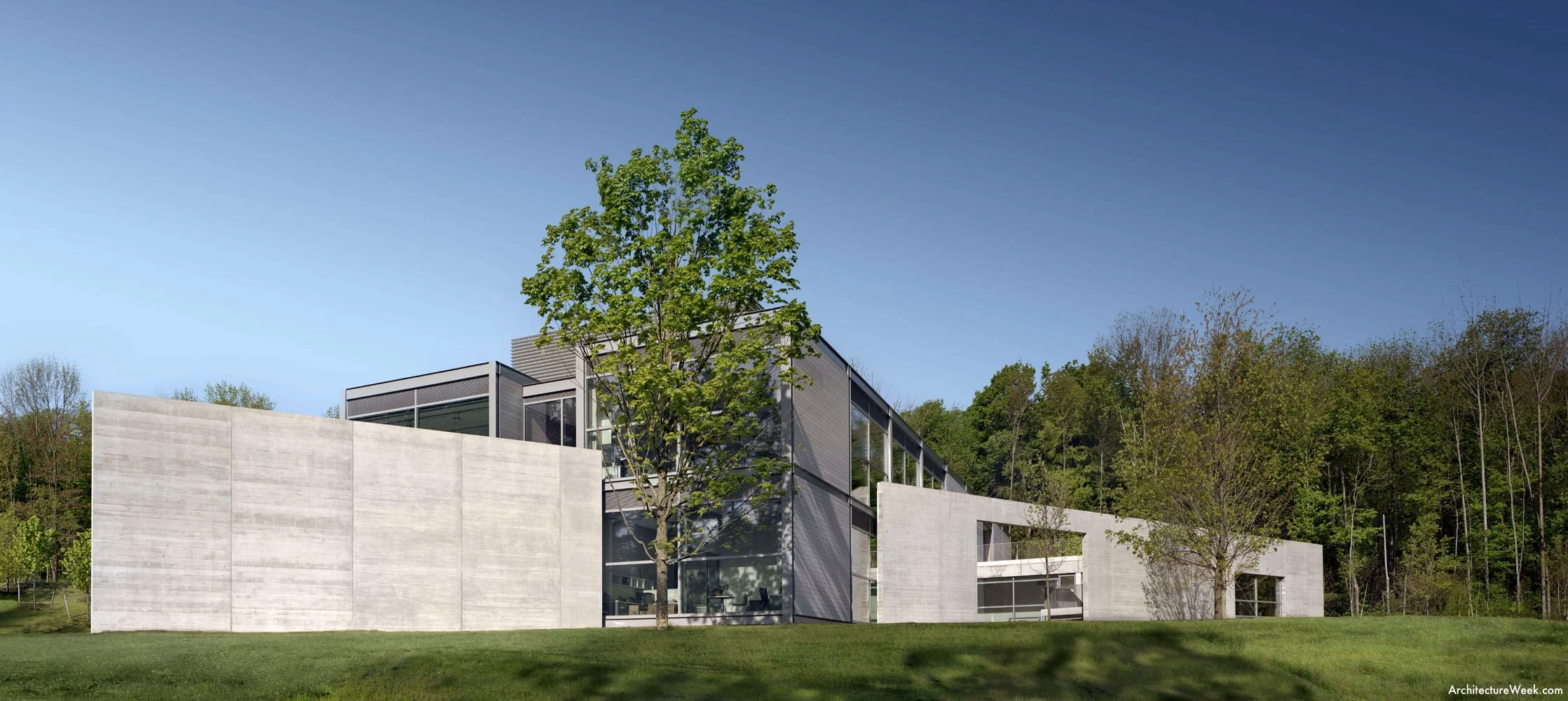 Nestled in the rolling terrain of the Berkshires, the Stone Hill Center isn't just a gallery — it's an instrument for observing nature. Tadao Ando, the architectural legend, used his signature smooth concrete to create powerful, solid geometric forms that feel firmly grounded.